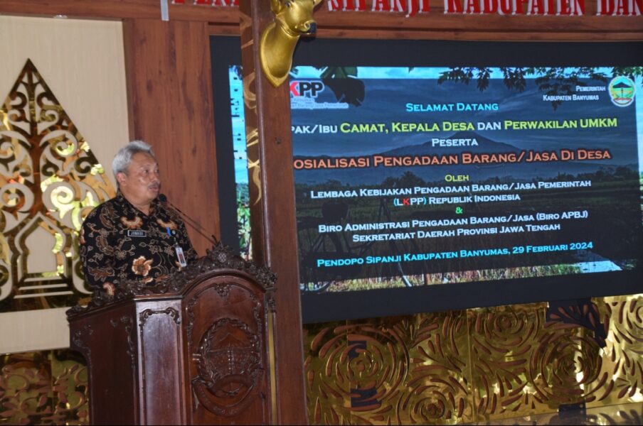 PURWOKERTO – Pemerintah Kabupaten Banyumas bekerja sama dengan Lembaga Kebijakan Pengadaan Barang/Jasa Pemerintah (LKPP) Republik Indonesia menyelenggarakan sosialisasi Pengadaan Barang dan Jasa (PBJ) Desa di Pendopo Si Panji. Acara ini bertemakan “Isu Strategis Pengadaan Barang atau Jasa Desa” dan dihadiri oleh berbagai pihak terkait, Pada Kamis (29/02/2024).