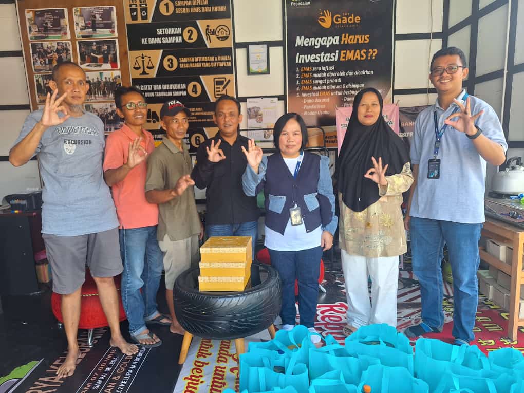 PURWOKERTO – PT Pegadaian memberikan hampers kepada pengurus Bank Sampah yang menjadi mitra Pegadaian. Bank Sampah Srayan Makarya di Bobosan Purwokerto Utara menjadi salah satu Bank Sampah mitra yang dikunjungi pada Sabtu 6 April 2024.